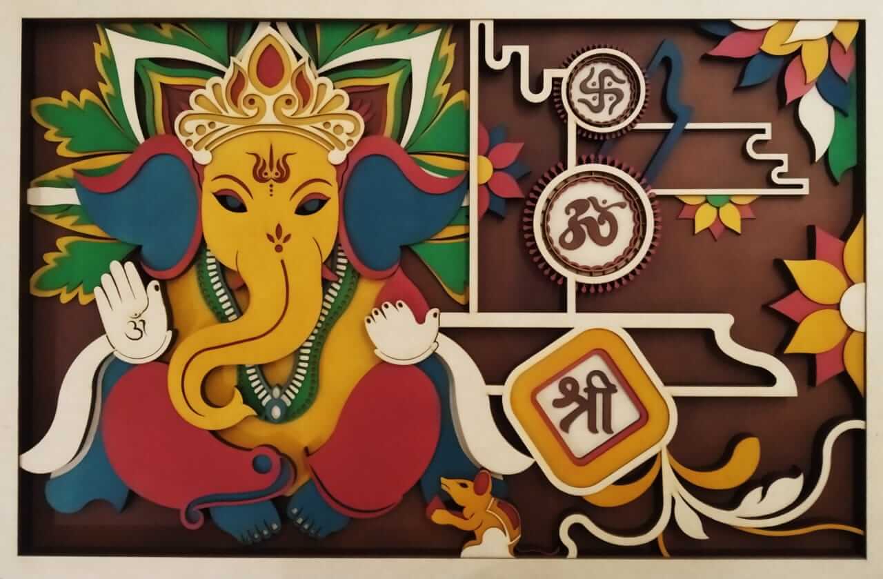 Madhav Art Lord Ganesha Painting Digitally Printed Classic Creative And Decorative Photo Frame God Ganesh Religious Digital Images For Ganesh 14x14